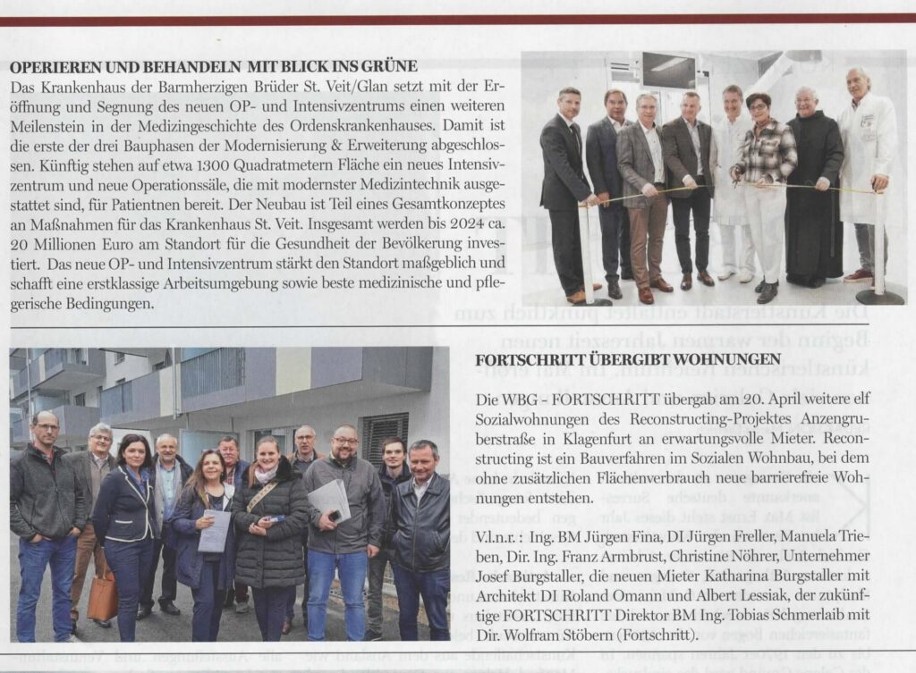 Die Wohnbaugenossenschaft FORTSCHRITT konnte am 20. April 2023 im Rahmen ihres großen Reconstructing-Bauprojektes in der Anzengruberstraße in Klagenfurt weitere wohnbaugeförderte Sozialwohnungen an erwartungsvolle Mieter und Mieterinnen übergeben.